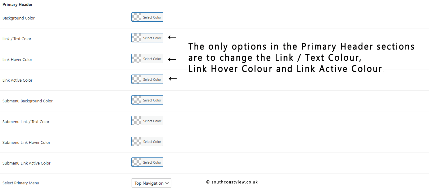 Upon raising this issue with technical support, I received the following response: The behaviour you’re seeing is expected. The options in the customiser apply only to the default header built with the customiser.