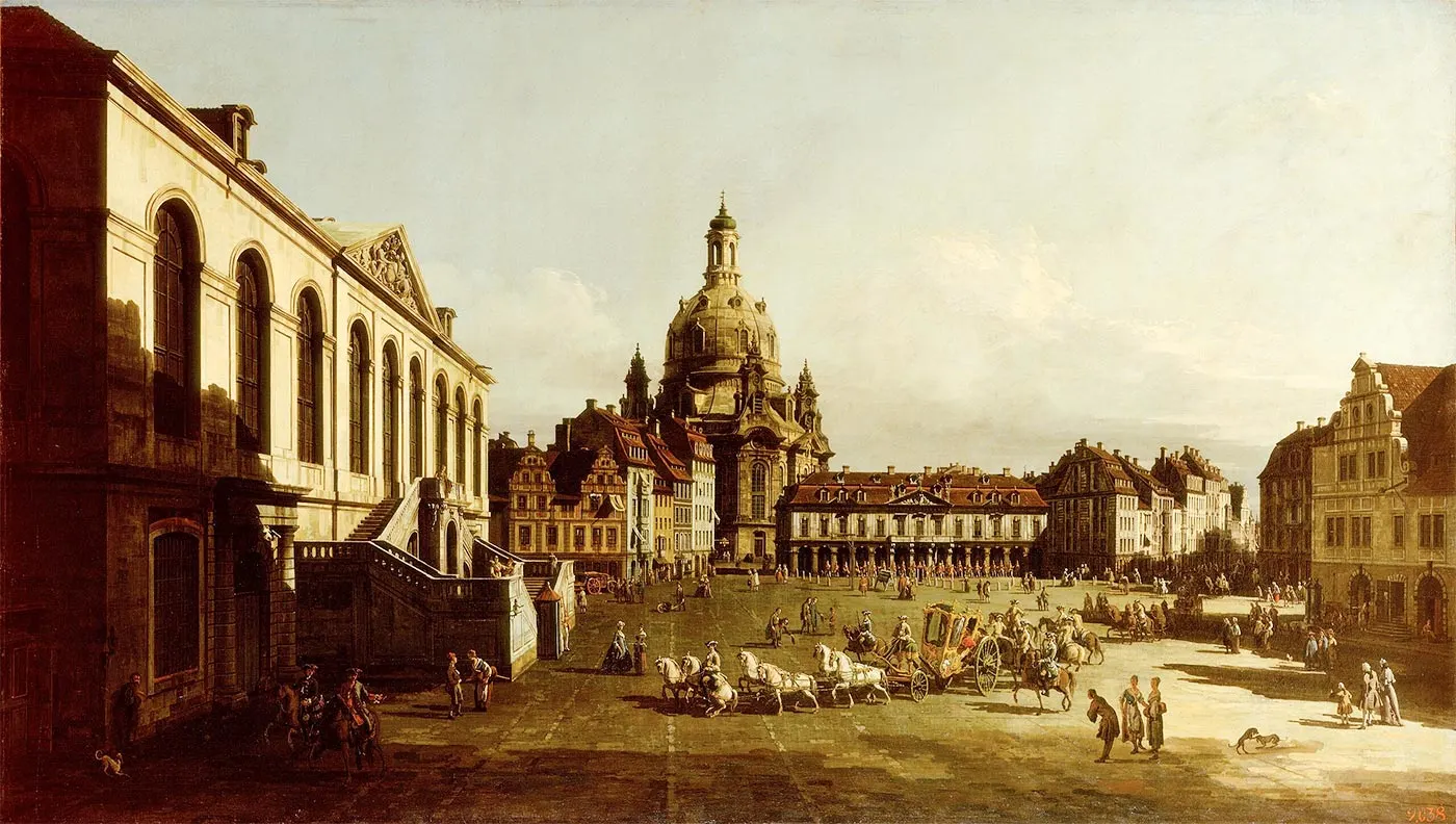 Bellotto’s approximately 29 views of Dresden were renowned for their topographical meticulousness, perspective, and detail. These paintings became an essential reference for architects and preservationists in the German Democratic Republic (GDR).